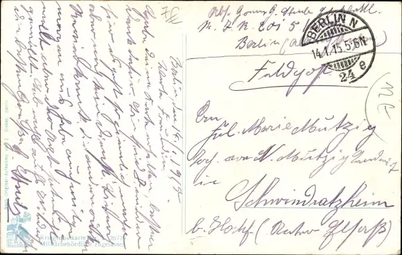 Zustand, siehe Scan, gelaufen, 1915 - ca 9 cm X 14 cm