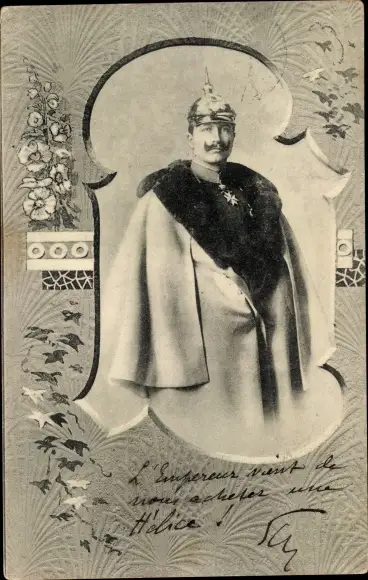 Passepartout Ak Kaiser Wilhelm II., Portrait, Mantel, Pickelhaube