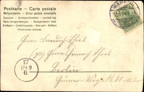 Zustand, siehe Scan, gelaufen, 1904 - ca 9 cm X 14 cm