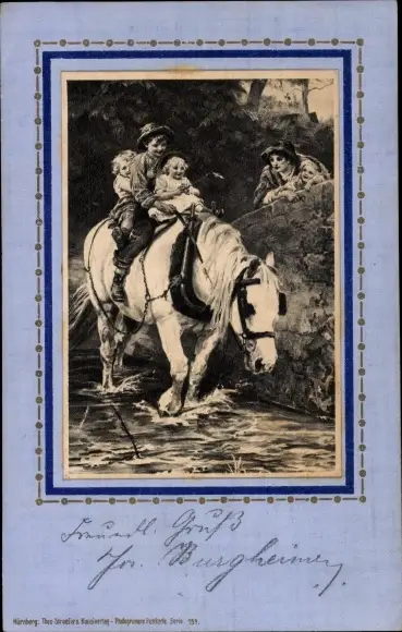 Passepartout Ak Kinder auf einem Pferd, Fluss