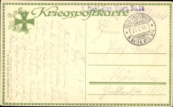 Zustand, siehe Scan, gelaufen, 1915 - ca 14 cm X 9 cm