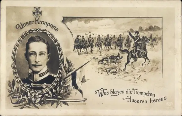 Passepartout Ak Kronprinz Wilhelm von Preußen, Was blasen die Trompeten, Husaren heraus
