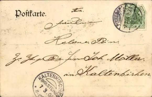 Zustand, siehe Scan, gelaufen, 1904- Inh.: H. Hatjes - ca 5 cm X 3 cm