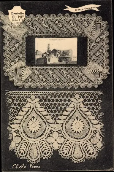 Passepartout Ak Le Puy en Velay Haute Loire, Dentelle, Stadtansicht