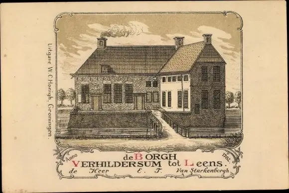 Passepartout Ak Leens Groningen, De Borgh, Verhildersum