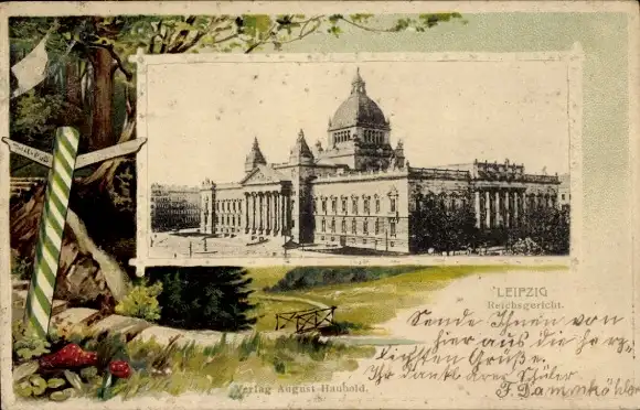 Passepartout Ak Leipzig in Sachsen, Reichsgericht, Wegweiser