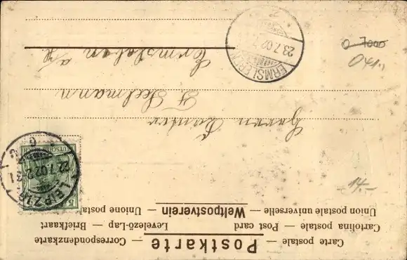 Zustand, siehe Scan, gelaufen, 1902 - ca 14 cm X 9 cm