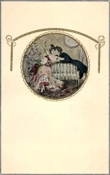 Passepartout Ak Liebespaar, Frau auf einem Sofa