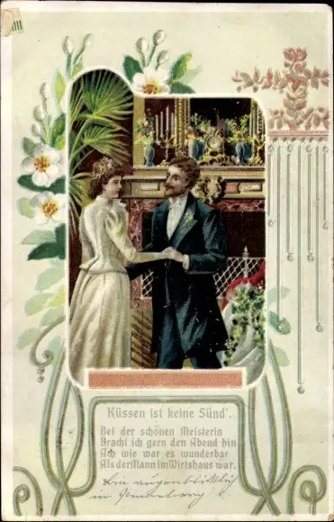 Passepartout Ak Liebespaar, Küssen ist keine Sünd