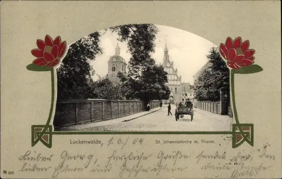 Passepartout Ak Luckenwalde in Brandenburg, St. Johanniskirche mit Turm