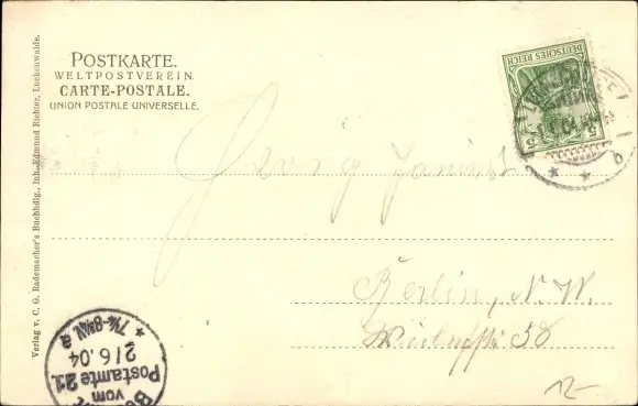 Zustand, siehe Scan, gelaufen, 1904 - ca 14 cm X 9 cm