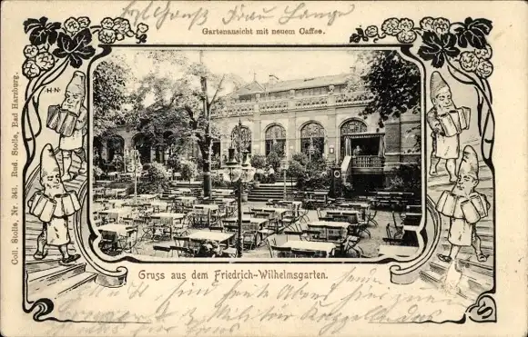 Passepartout Ak Magdeburg, Friedrich Wilhelms Garten, Neues Cafe, Zwerge servieren Bierkrüge