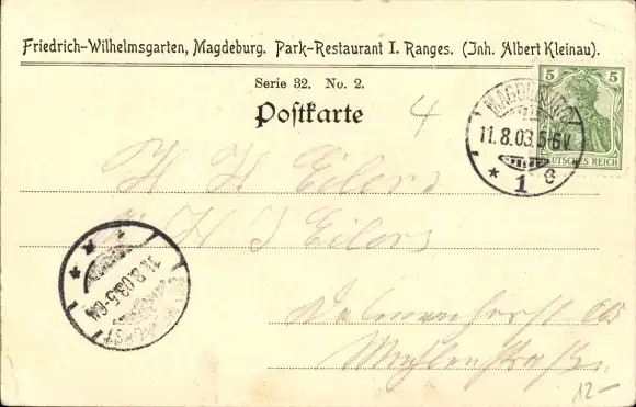 Zustand, siehe Scan, gelaufen, 1903- Inh. Albert Kleinau - ca 14 cm X 9 cm