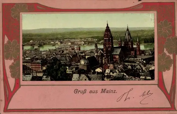 Passepartout Ak Mainz am Rhein, Stadtpanorama, Dom