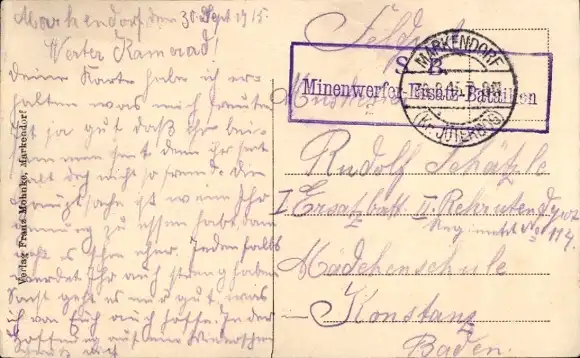 Zustand, siehe Scan, gelaufen, 1915 - ca 14 cm X 9 cm