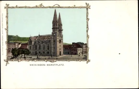 Passepartout Ak Meiningen in Südthüringen, Marktplatz, Kirche