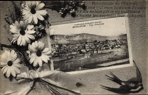 Passepartout Ak Monastir Mazedonien, Panoramablick auf den Ort