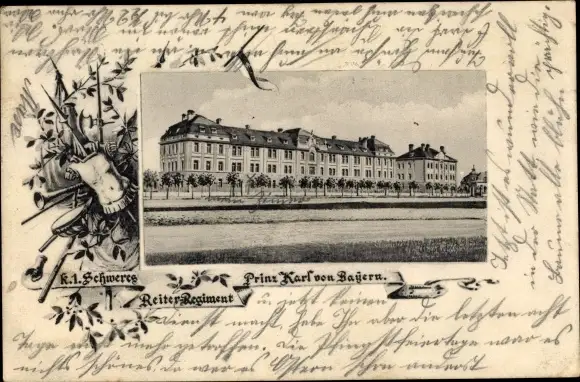 Passepartout Ak München, K. 1 schweres Reiter Regiment Prinz Karl von Bayern, Kaserne