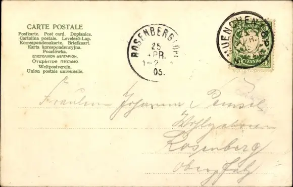 Zustand, siehe Scan, gelaufen, 1905 - ca 14 cm X 9 cm