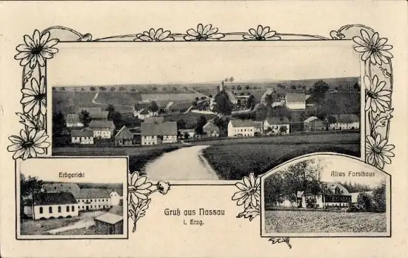 Passepartout Ak Nassau Frauenstein im Erzgebirge, Teilansicht, Forsthaus, Erbgericht