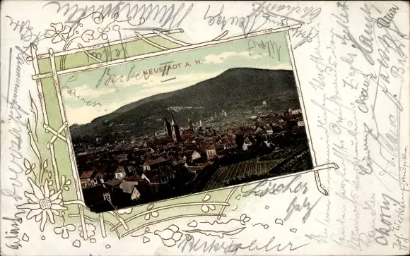 Passepartout Ak Neustadt an der Haardt Neustadt an der Weinstraße, Totalansicht, Kirchtürme