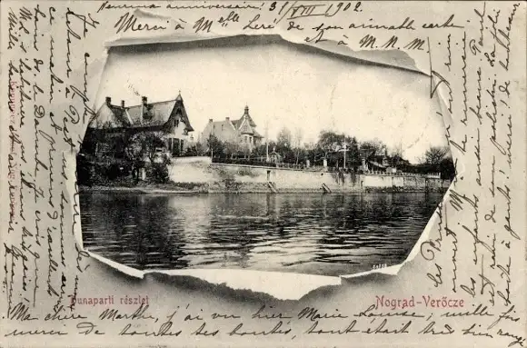 Passepartout Ak Nograd Veröcze Ungarn, Teilansicht