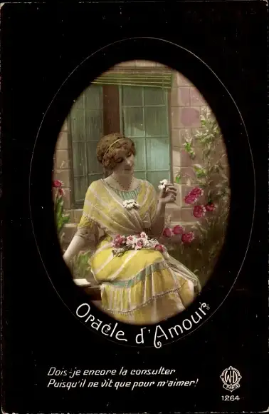 Passepartout Ak Oracle d'Amour, Frau m. Blumen, Kitsch