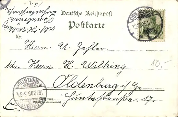 Zustand, siehe Scan, gelaufen, 1905 - ca 14 cm X 9 cm