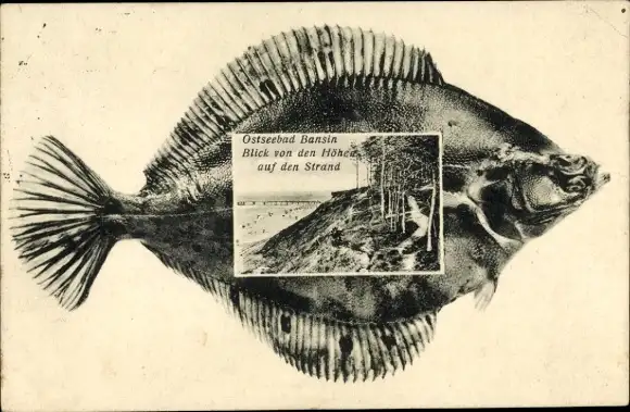 Passepartout Ak Ostseebad Bansin auf Usedom, Strandpartie, Flunder