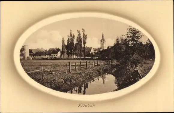 Passepartout Ak Paderborn in Westfalen, Teilansicht, Kirche