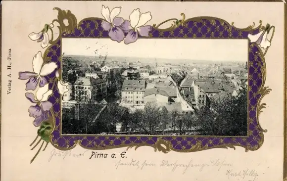 Passepartout Ak Pirna an der Elbe, Teilansicht