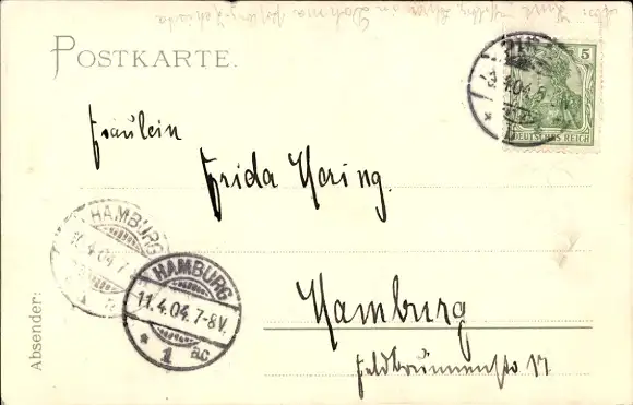 Zustand, siehe Scan, gelaufen, 1904 - ca 14 cm X 9 cm