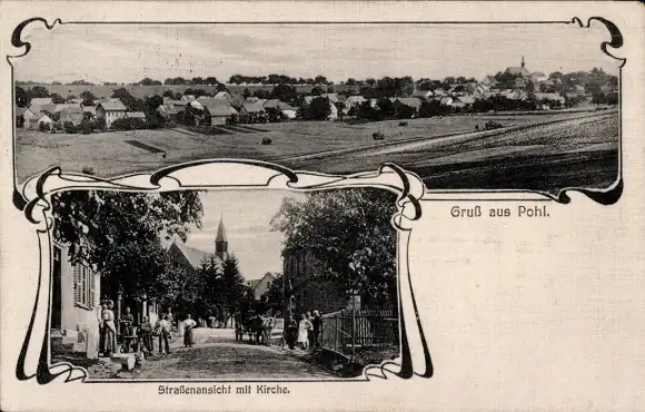 Passepartout Ak Pohl Nassau im Taunus, Gesamtansicht, Straßenansicht mit Kirche