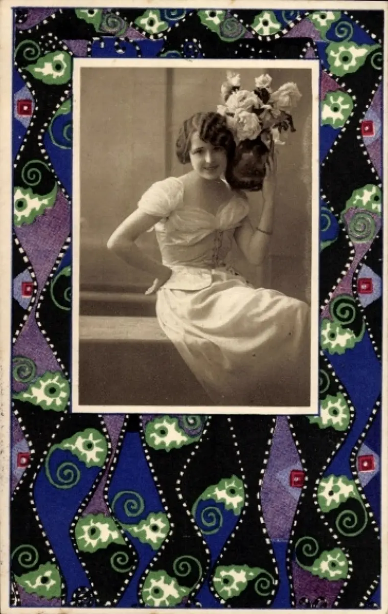 Passepartout Ak Porträt einer jungen Frau, Blumen