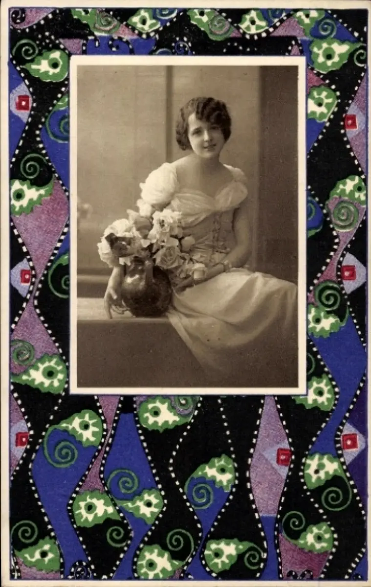 Passepartout Ak Porträt einer jungen Frau, Blumen