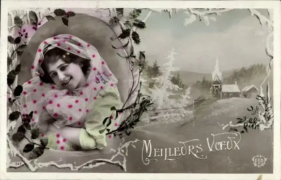 Passepartout Ak Portrait einer Frau, Winterlandschaft