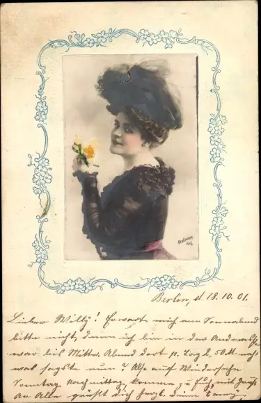 Passepartout Ak Portrait einer Frau mit Hut