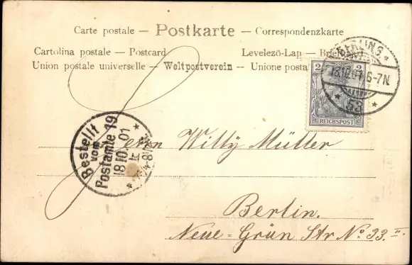 Zustand, siehe Scan, gelaufen, 1901 - ca 9 cm X 14 cm