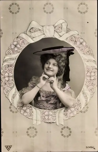 Passepartout Ak Portrait einer jungen Frau mit Hut