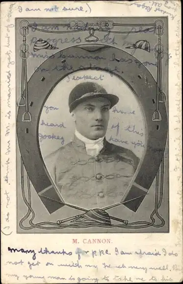 Passepartout Ak Portrait eines Mannes, Jockey, Hufeisen