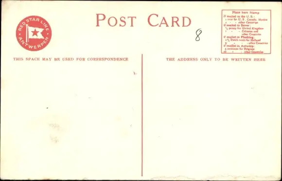 Passepartout Ak Red Star Line, Antwerpen New York, Boston, Passagierdampfer Vaderland 1900