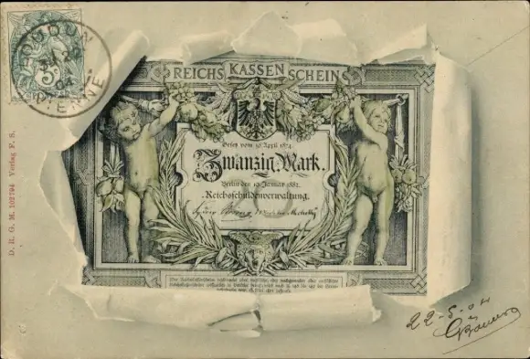 Passepartout Ak Reichskassenschein, Zwanzig Mark, Geldschein