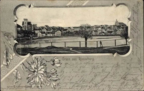 Passepartout Ak Ronneburg in Thüringen, Totalansicht der Ortschaft