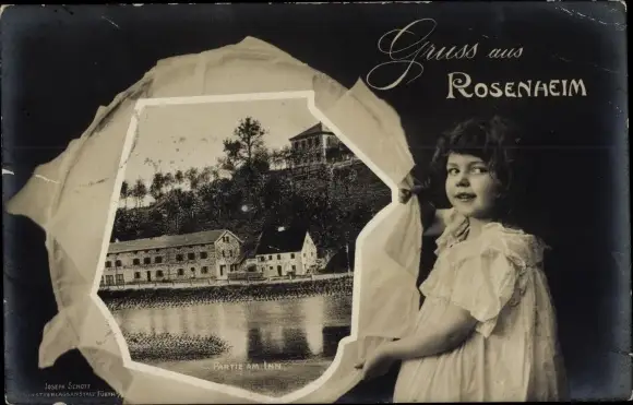 Passepartout Ak Rosenheim Oberbayern, Mädchen, Partie am Inn