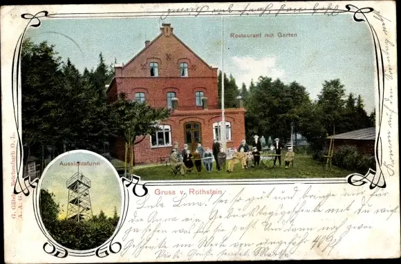 Passepartout Ak Rothstein Rotstein Reichenbach in der Oberlausitz, Restaurant, Garten, Aussichtsturm
