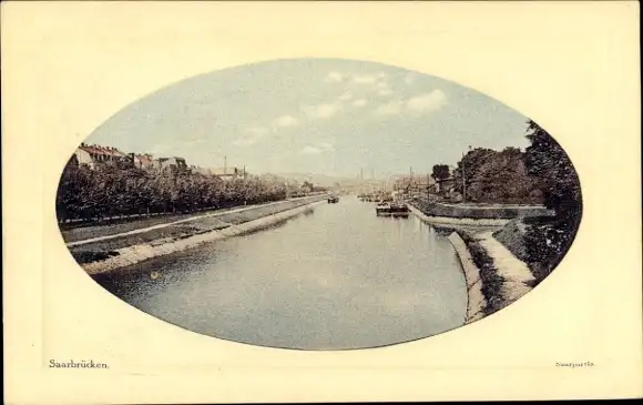 Passepartout Ak Saarbrücken, Partie an der Saar, Teilansicht