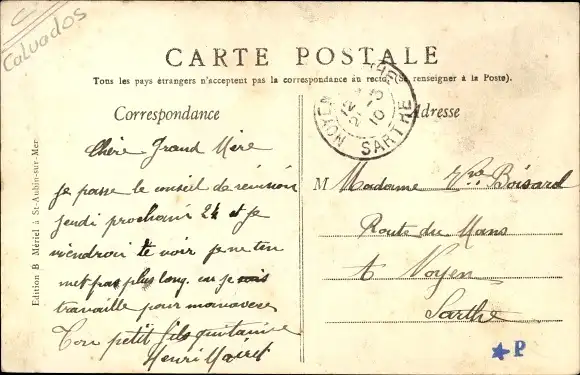 Zustand, siehe Scan, gelaufen, 1910 - ca 14 cm X 9 cm