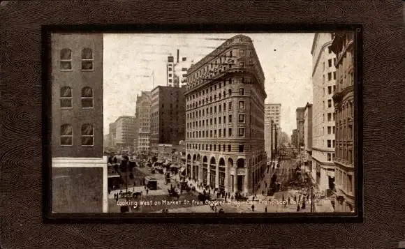 Passepartout Ak San Francisco Kalifornien USA, Straße, Hochhäuser, Markt