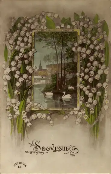 Passepartout Ak Schwanenteich, Maiglöckchen