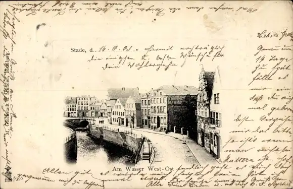 Passepartout Ak Stade in Niedersachsen, am Wasser, Strassenansicht